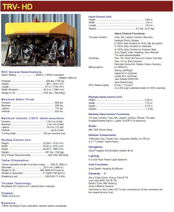 As long as it is within the management’s approval another small (manned/unmanned) submarine with similar capabilities is acceptable. The contractor may offer another ROV that is in the market, for fulfilling the task with the management’s approval.