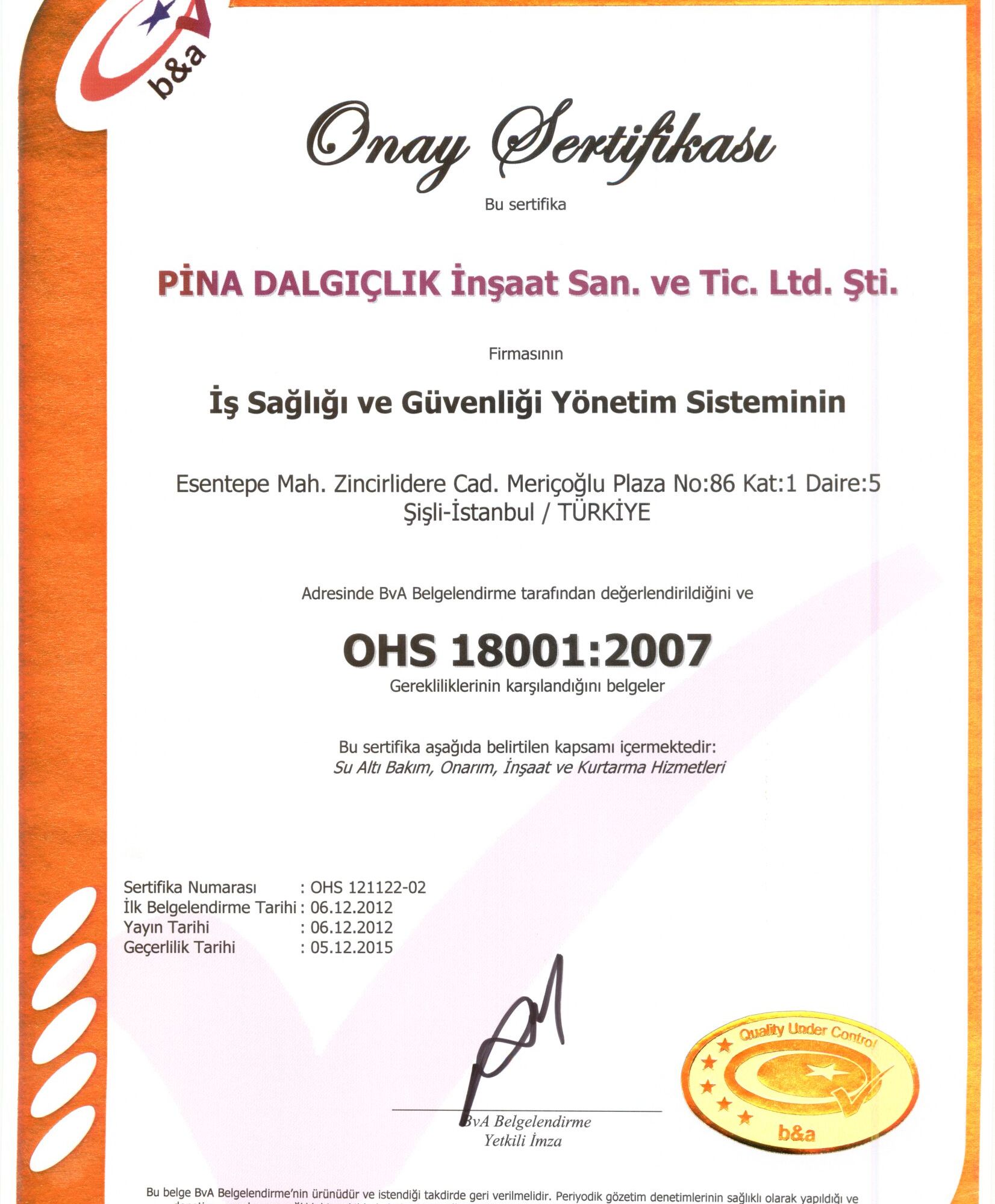 Firmamız, İGDAŞ (İstanbul Gaz Dağıtım Anonim Şirketi)'a ait Marmara Denizinde, Maltepe sahilden başlayarak sırasıyla Büyükada, Heybeliada, Burgazada...
